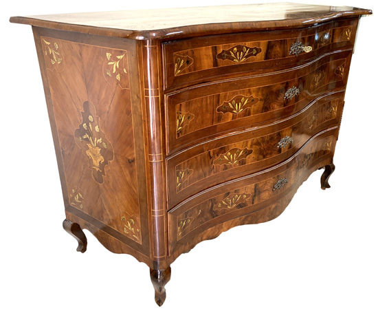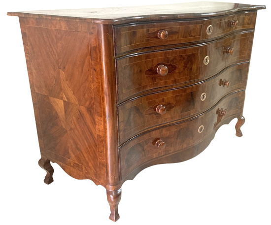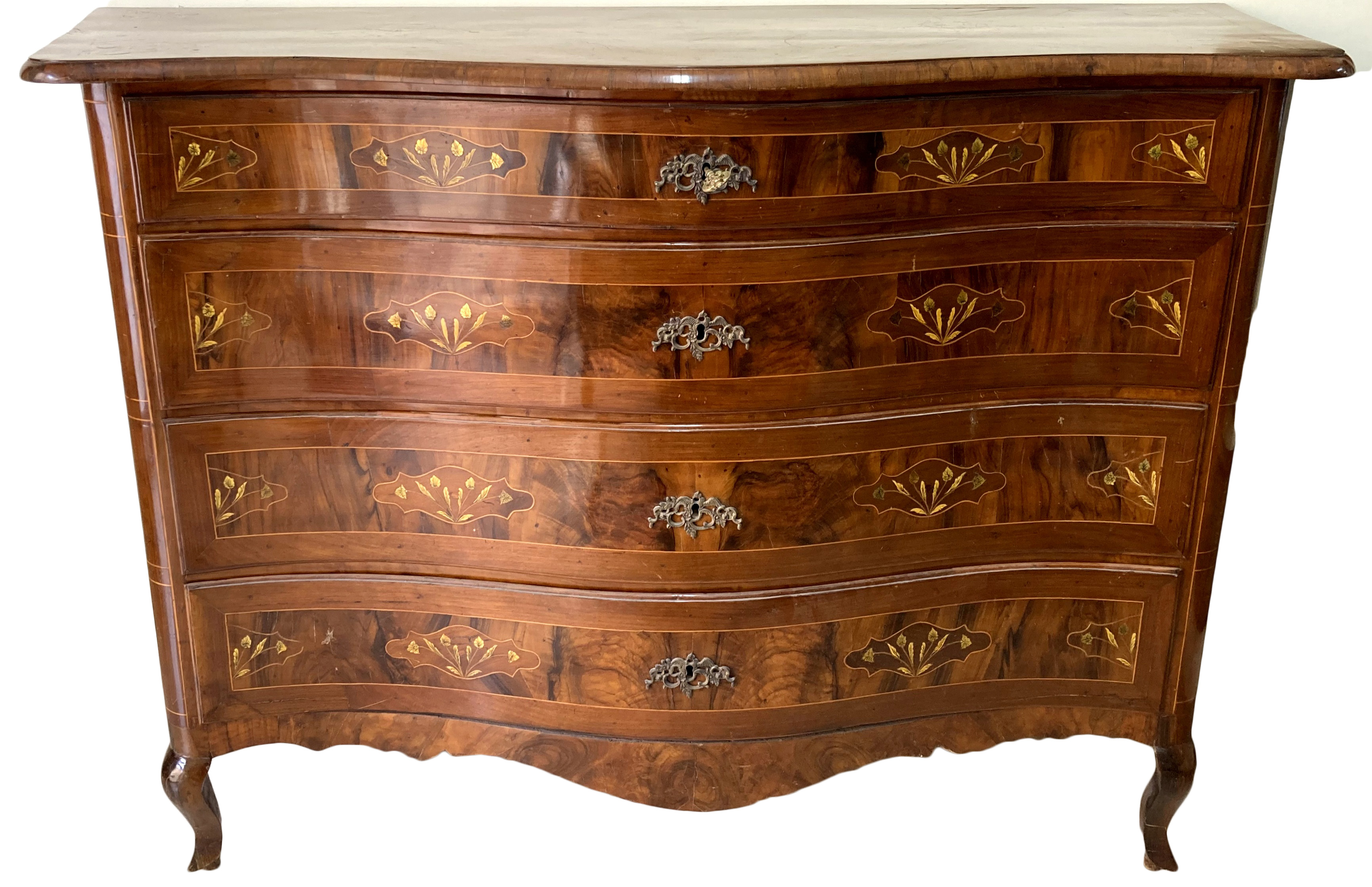 18thC. Maltese Olivewood Serpentine Front Chest Of Drawers