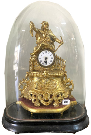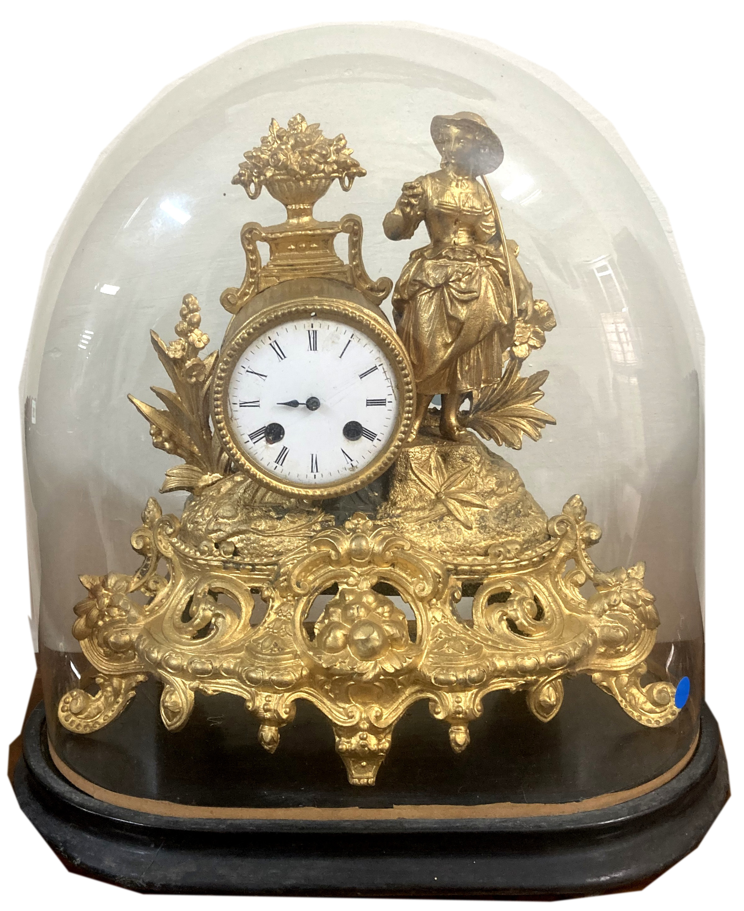 19thC. Gilt Mantle Clock Tal-Fenech under a glass Dome |
