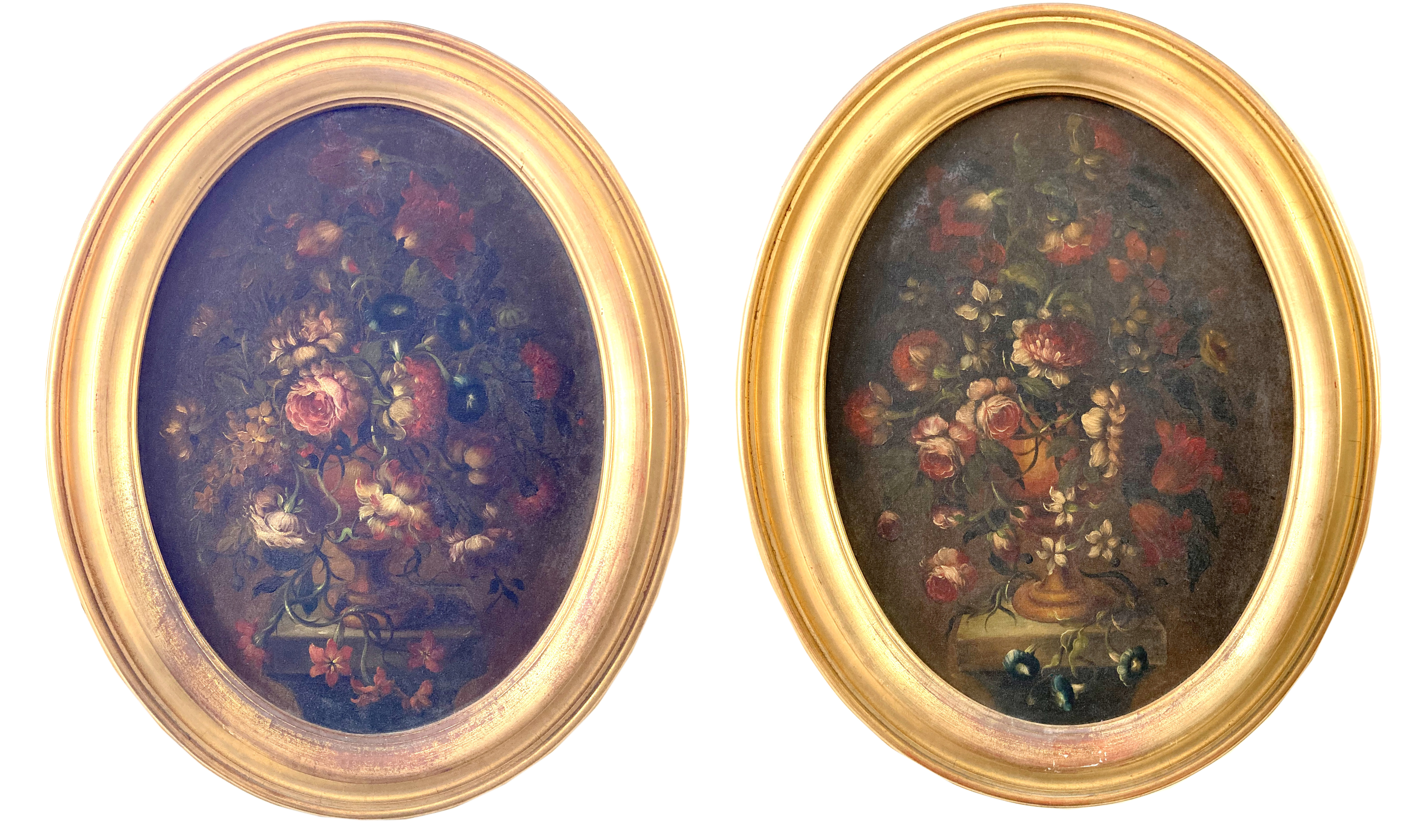 Frank Borg Pair Oval Oil Paintings Flowers |
