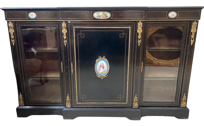 Large 19thC. Ebonised 3 Door Cabinet |