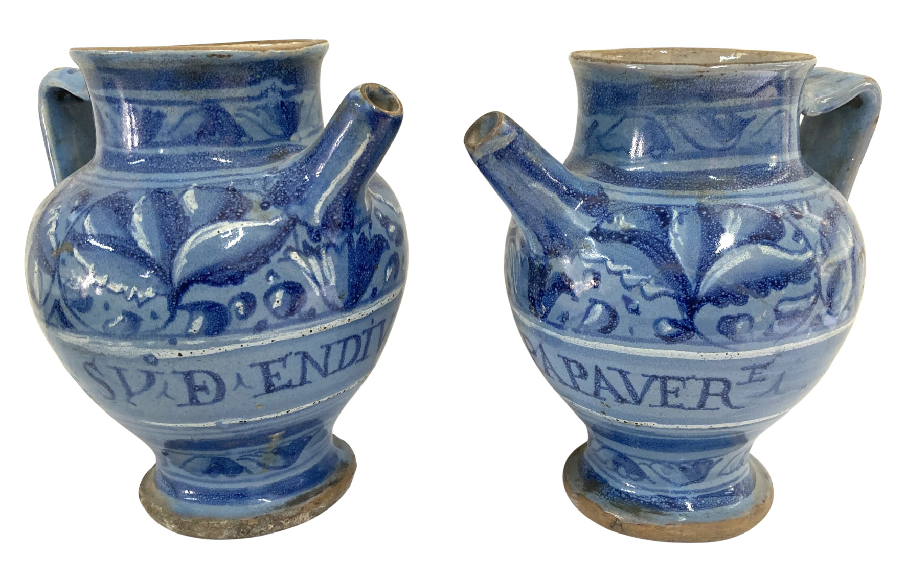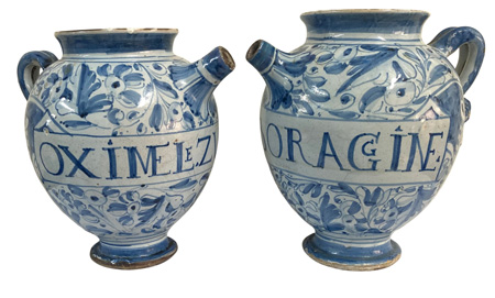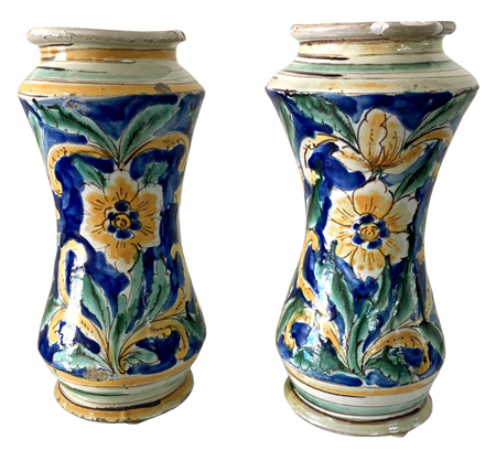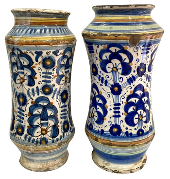 Pair 17thC. Maiolica Wet Drug Jars |