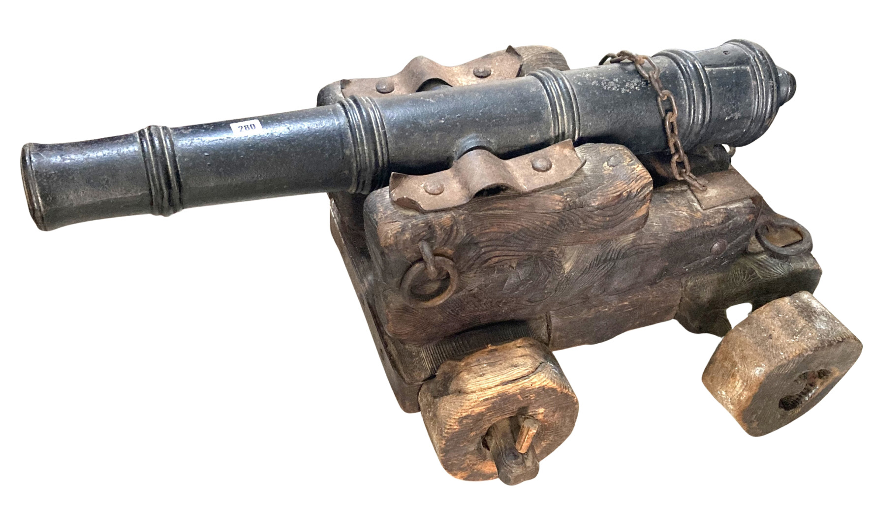 19thC. Iron Cannon on Wooden Base |