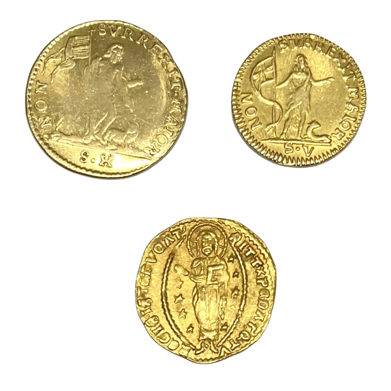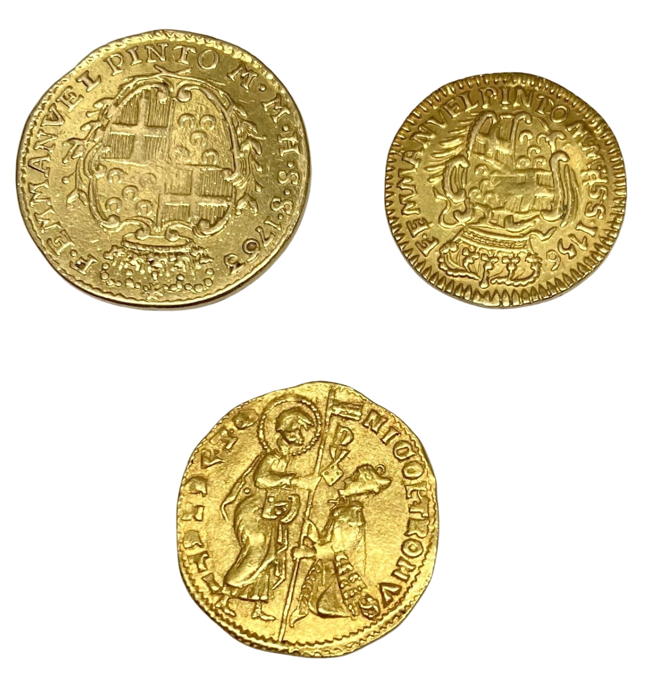 Gold 5 and 10 Scudi Pinto and Gold Zecchino (front & back) |
