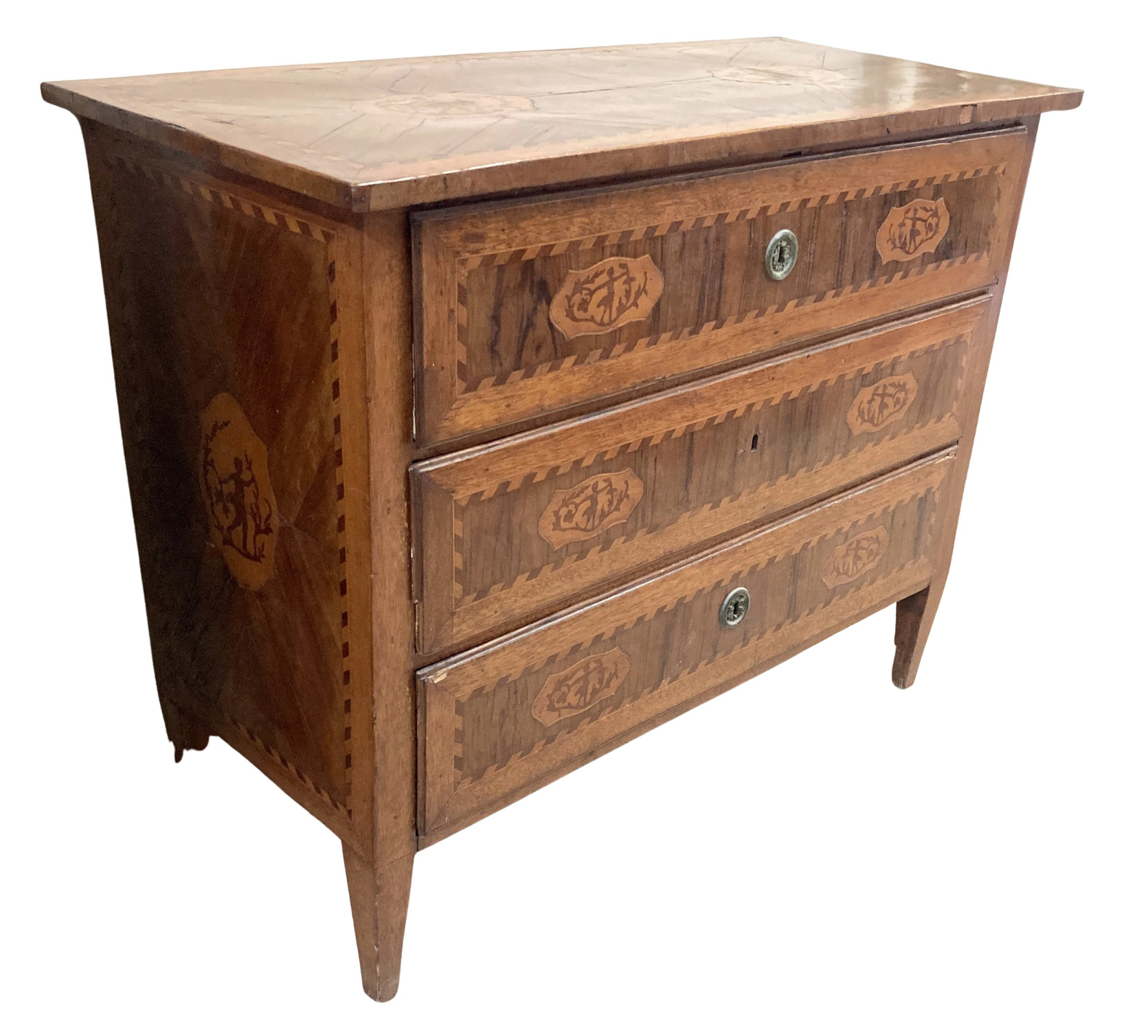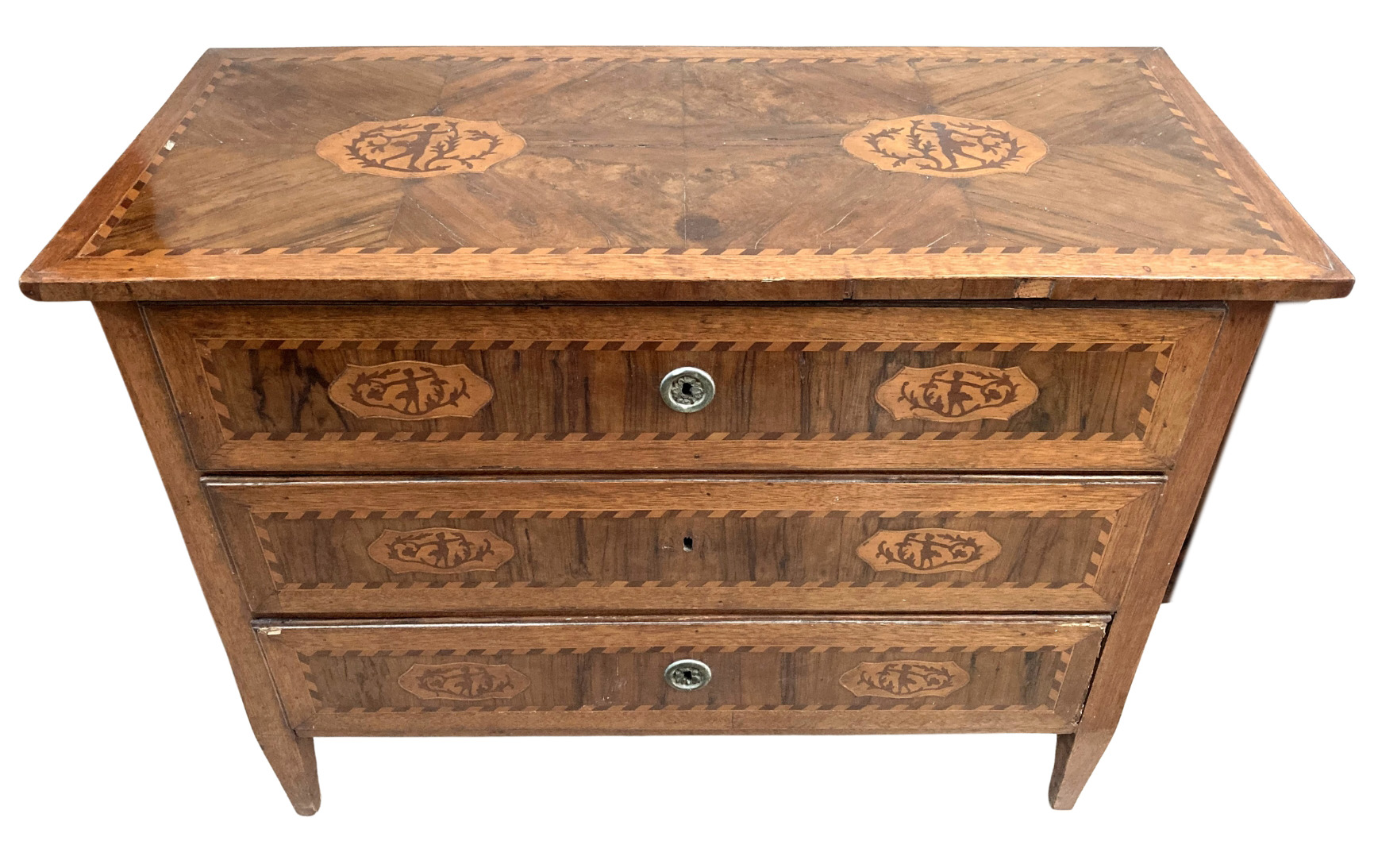 19thC. Maltese Inlaid Chest of 3 Drawers