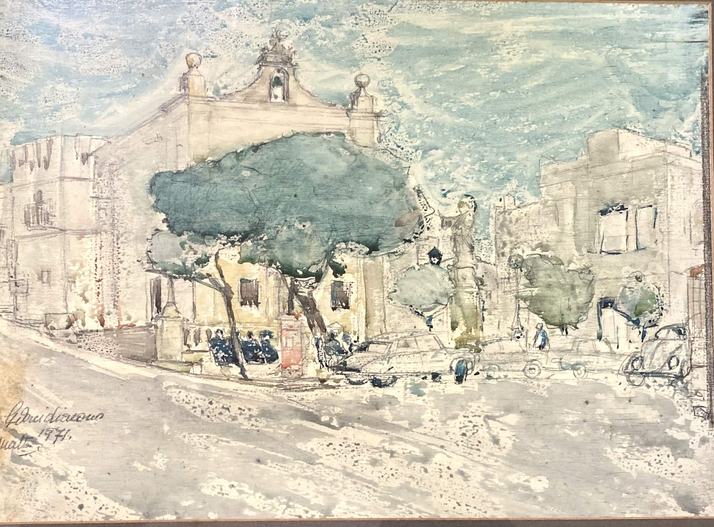 G.Arcidiacono 1971 Watercolour San Pawl Tat Targa |