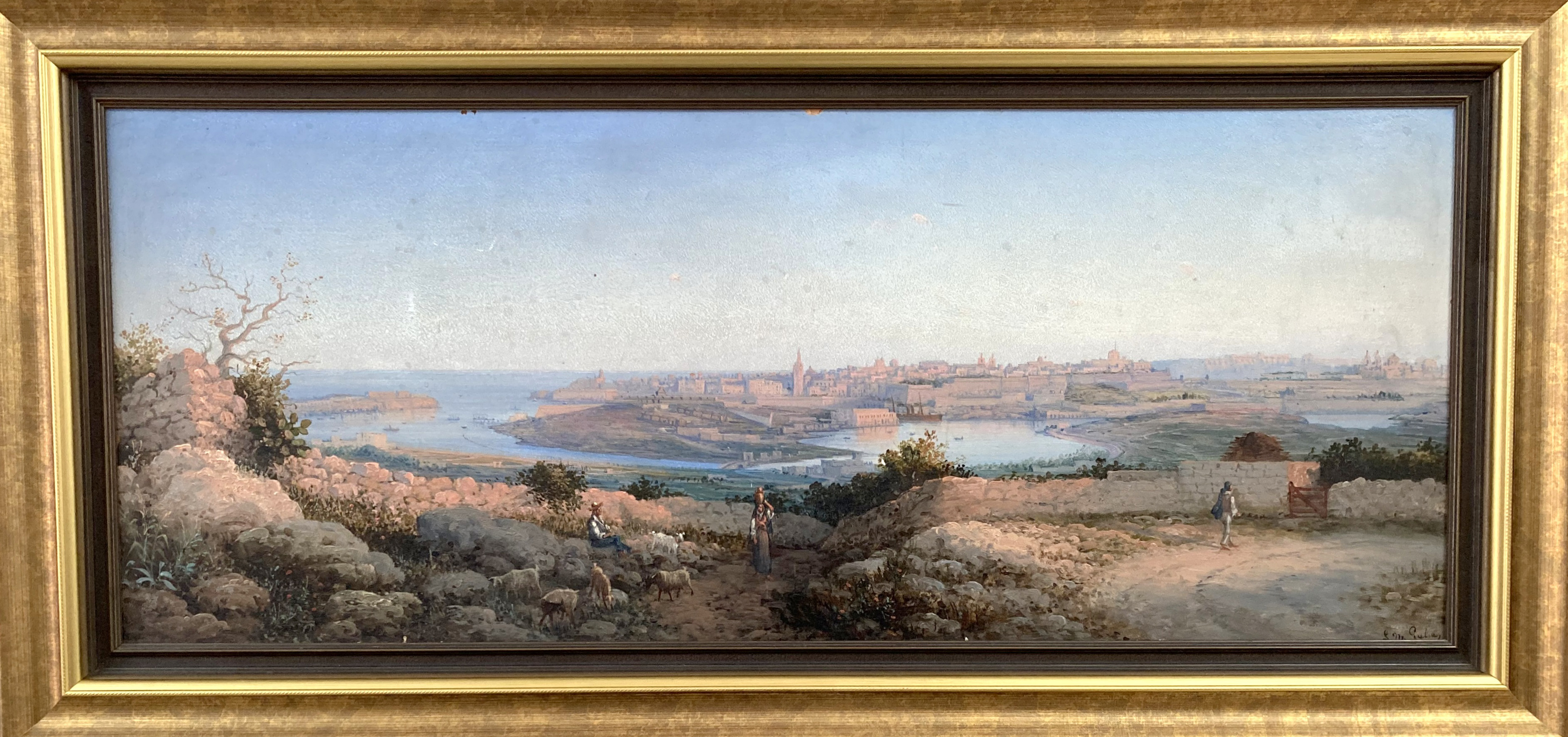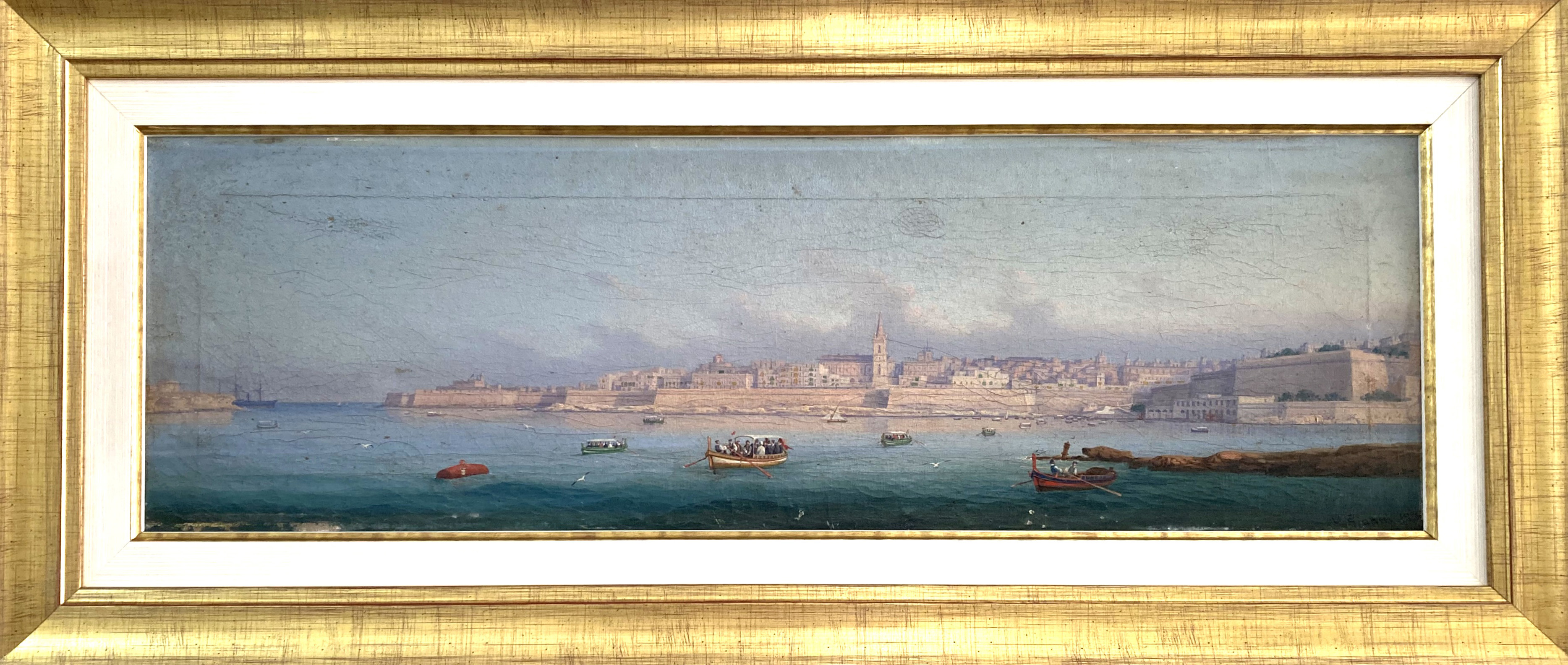 G.Gianni 1876 Malta Harbour Scene 68 X 21 cm |
