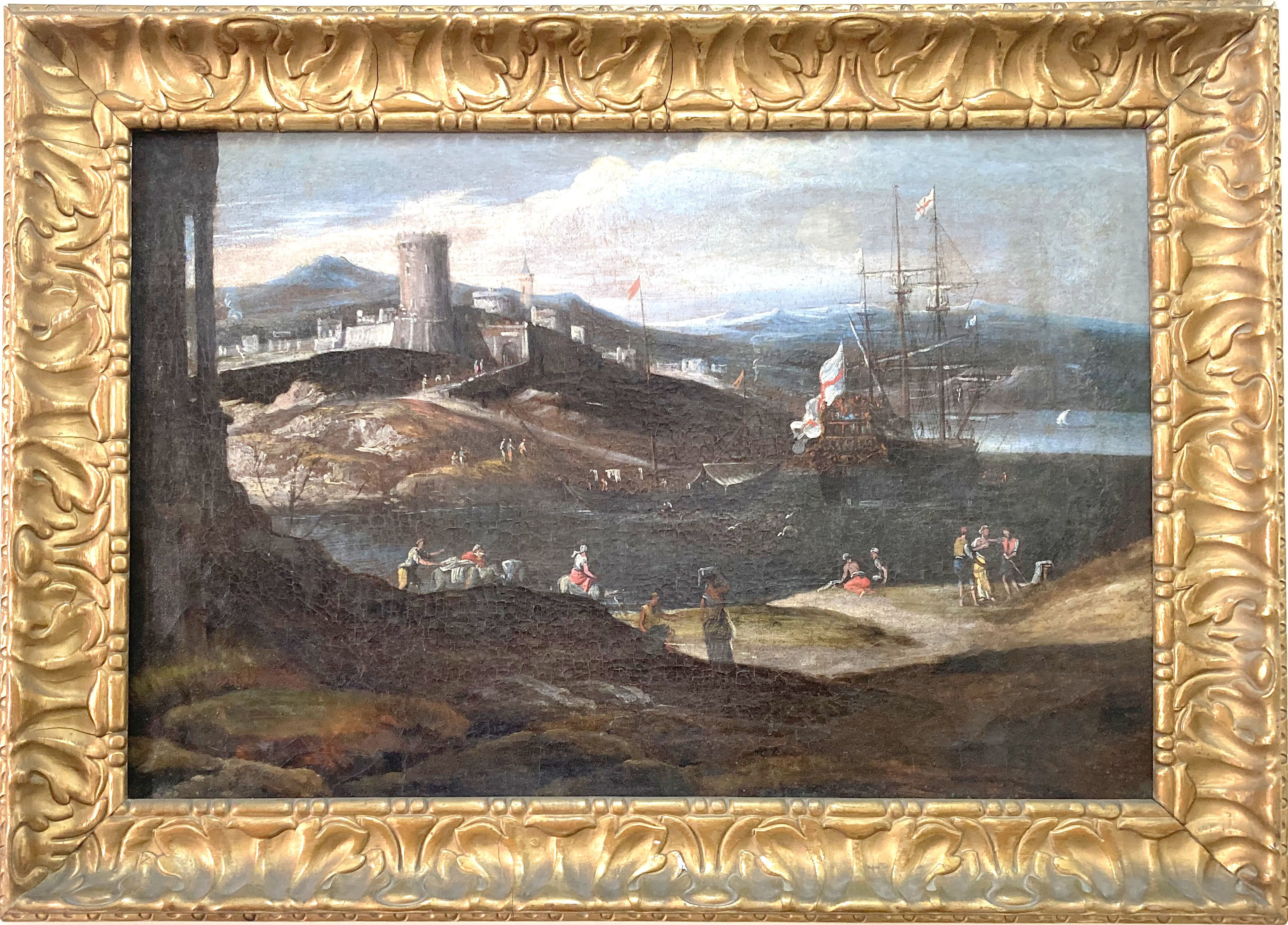 Early 17thC. Oil Galleon in Harbour |