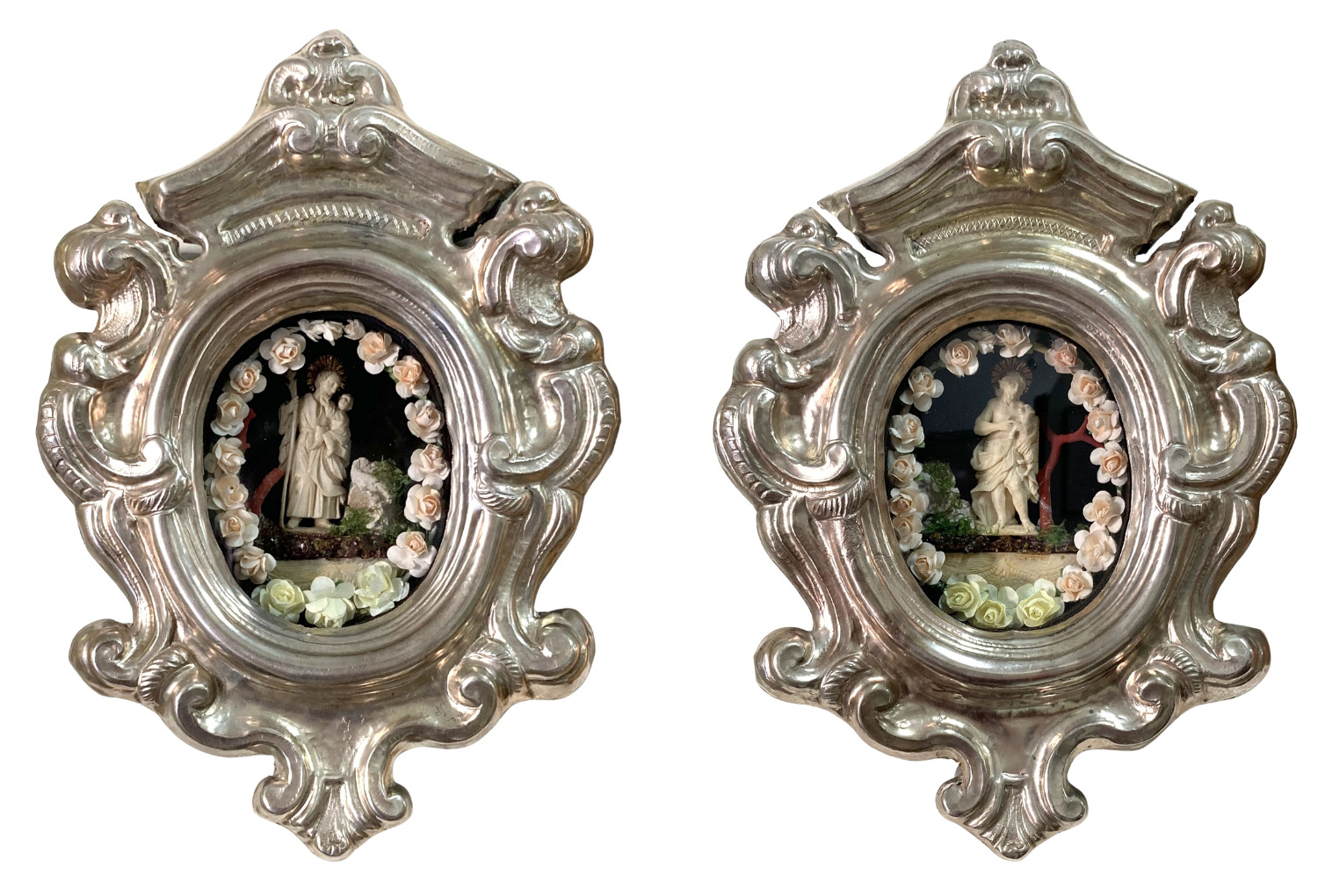 Pair 18thC. Sicilian Silver Frames with Ivory Figures |