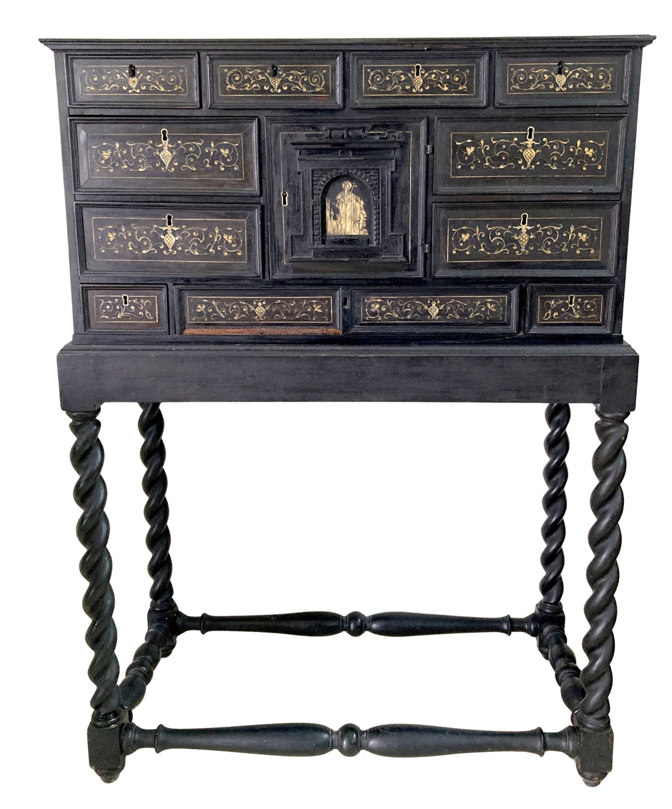 19thC. Ebonised Secretaire on Stand Inlaid With Ivory |