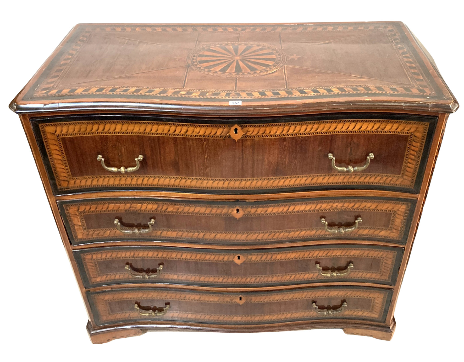 19thC. Inlaid Walnut Chest of 4 Drawers-001 |