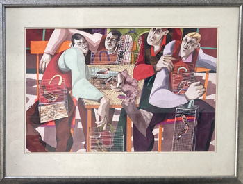 R.Caruana Dingli Oil Scene with Figures |