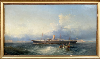 L.M.Galea 1900 Oil On Canvas Steamship Off Valletta |