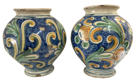 Pair 18thC. Rome Maiolica Wet Drug Jars |