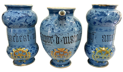 Set of 18thC. Maiolica Albarelli and Wet Drug Jar |