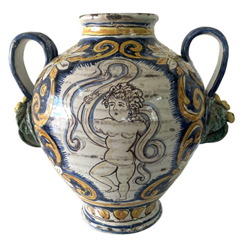Large 18thC. Maiolica Vase with Handles |