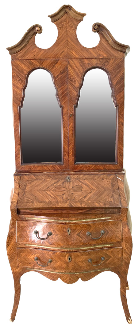 18thC. Chest Secretaire Veneered in olive walnut with geometric designs