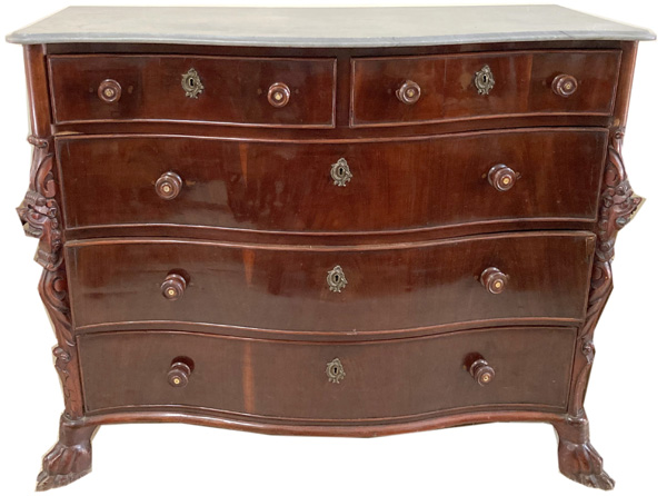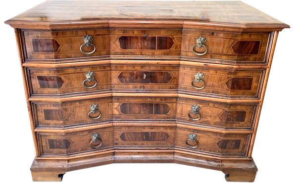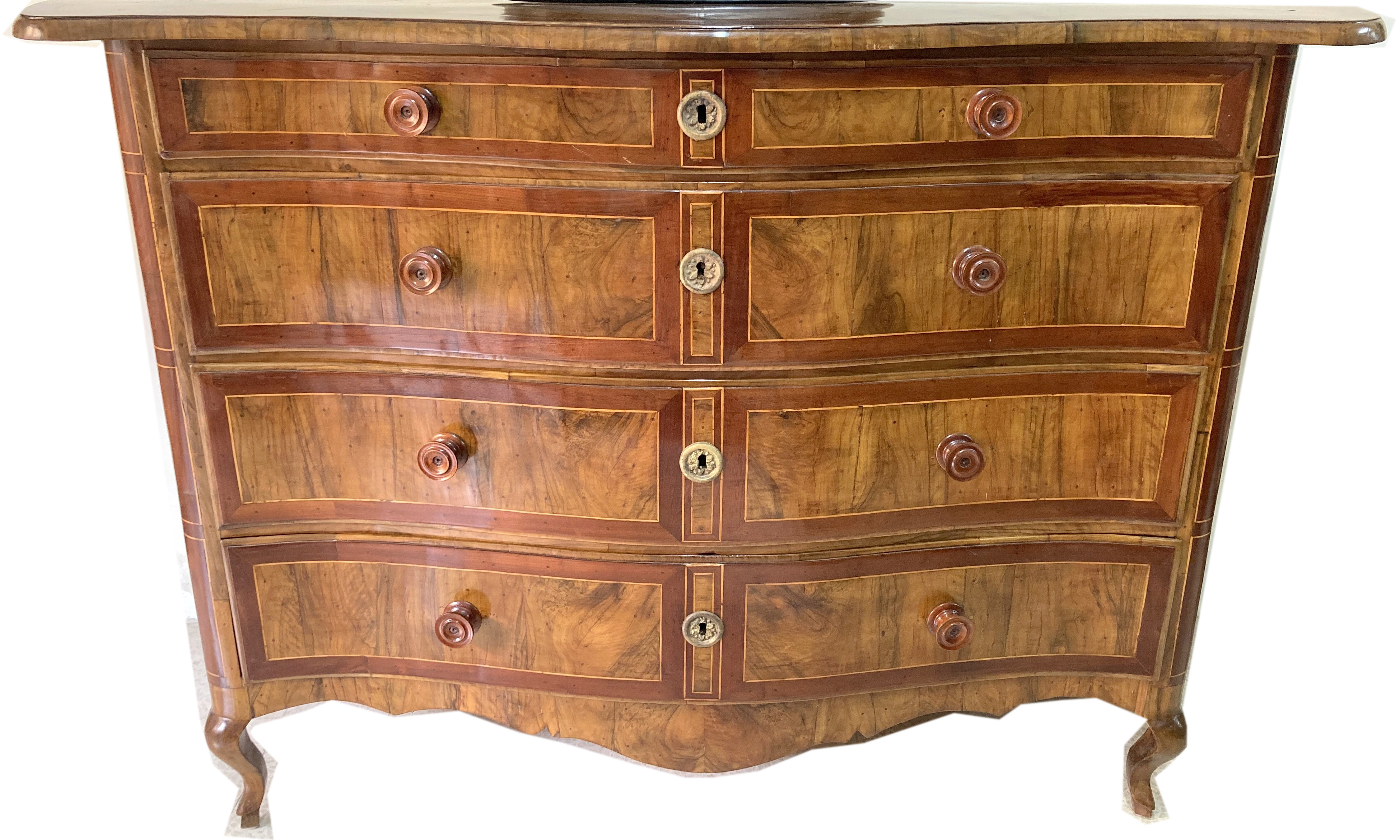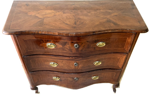 Small 18thC. Maltese Serpentine Front Chest of 3 Drawers