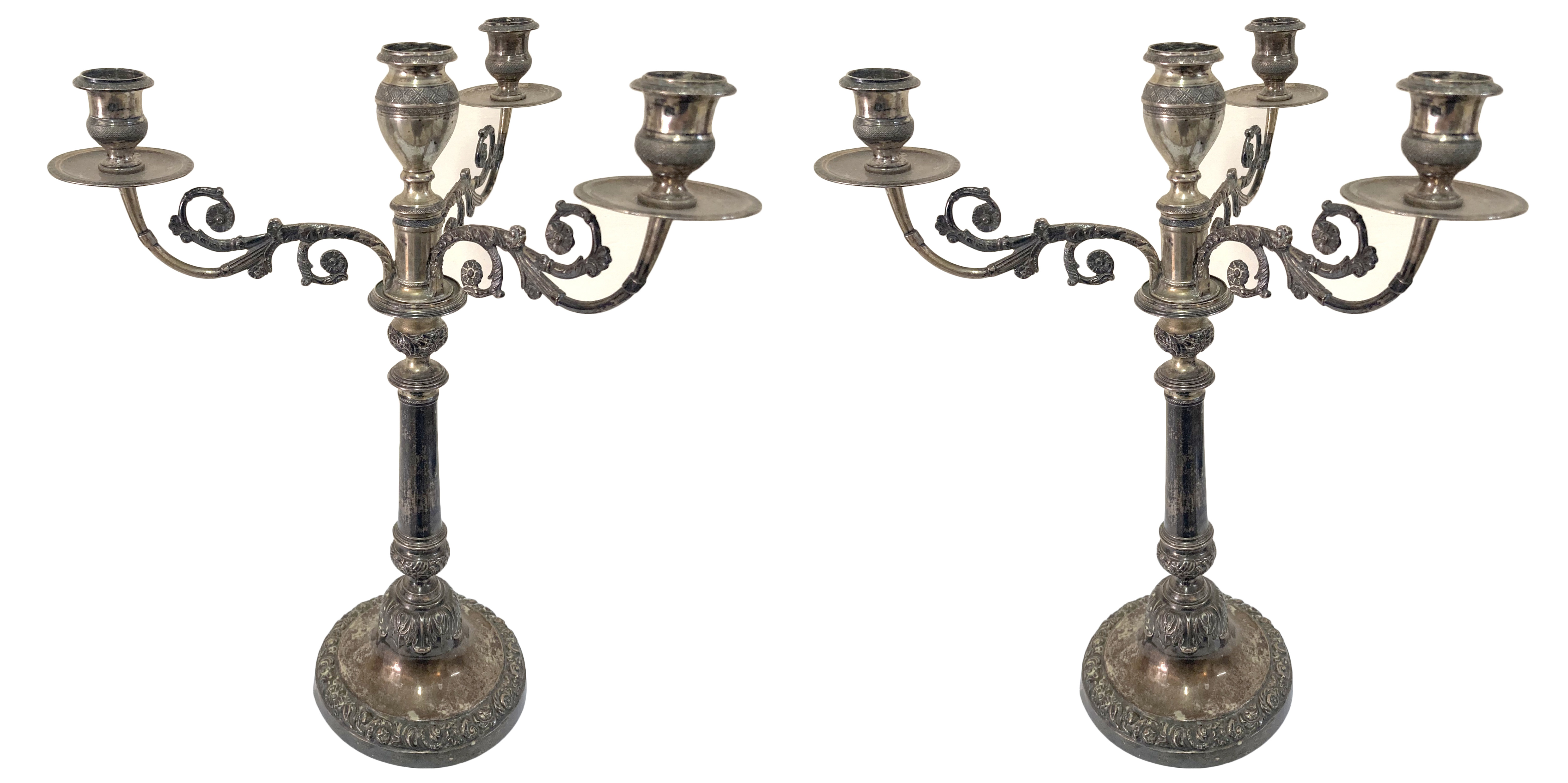 Pair English Silver Gilded 3 Branch Candelabras 1814 |