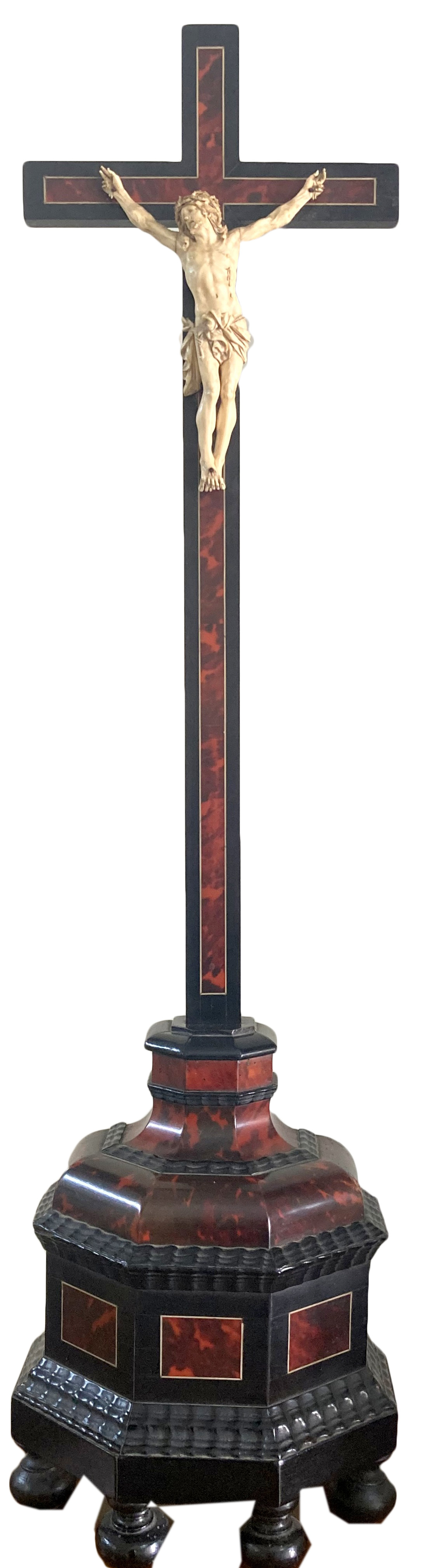Antique Ivory Crucifix on Tortoise Shell Stand |