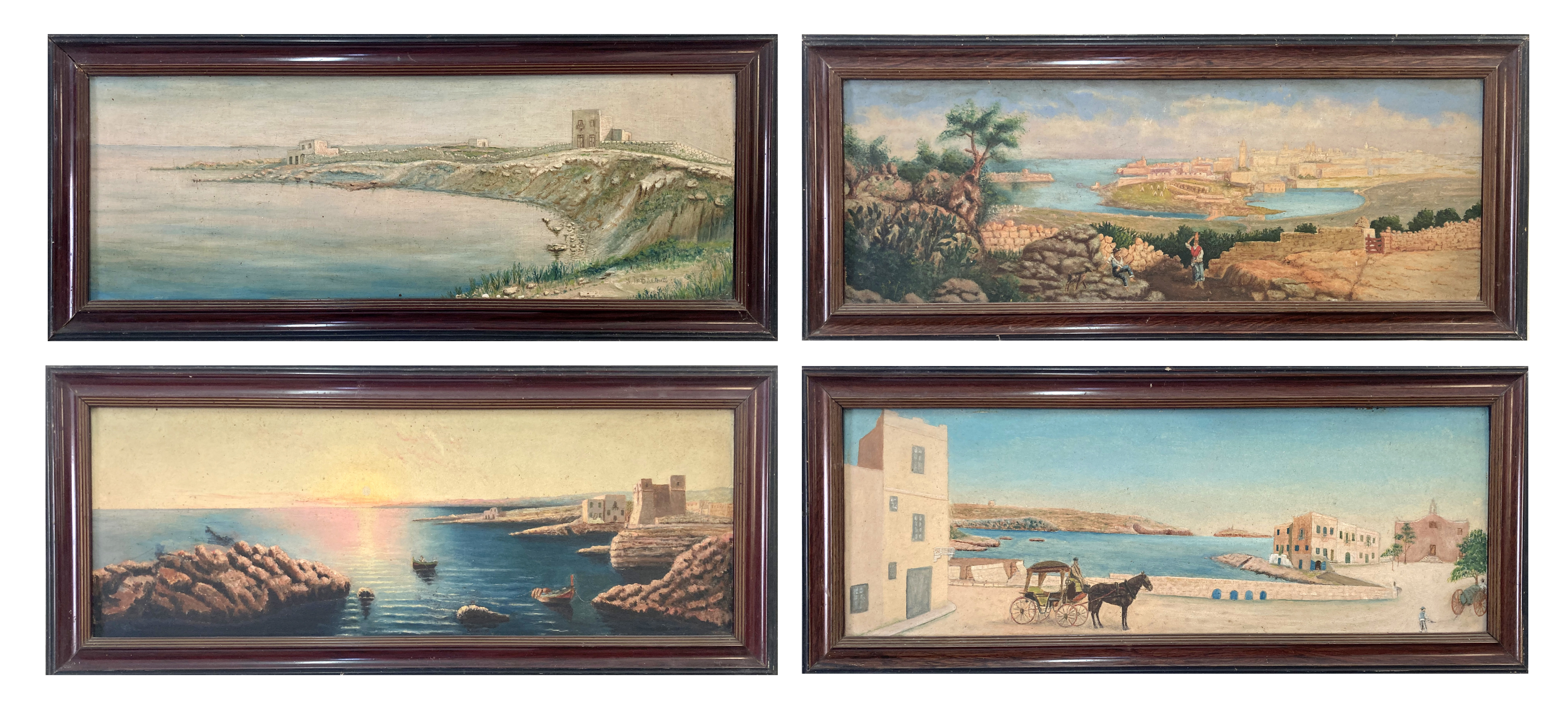 4 Oil on Board Maltese Scenes 28cm X 64cm