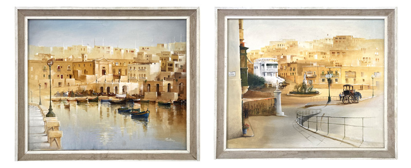 Arnold Sultana Pair Oil Paintings Spinola Scenes |