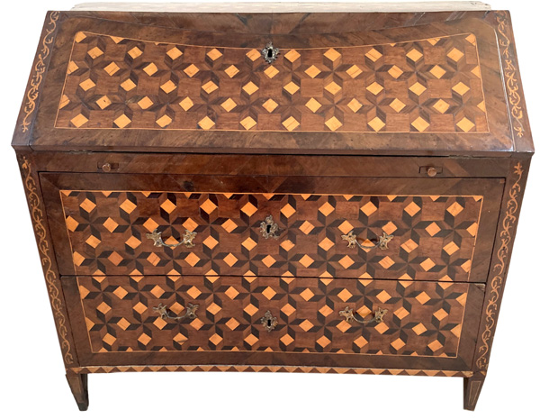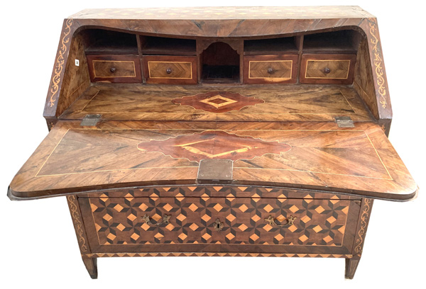 19thC. Maltese Olivewood Bureau With Parquetry Inlay
