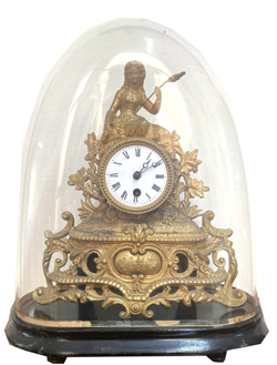 19thC. Gilt Mantelpiece Clock under Glass Dome |