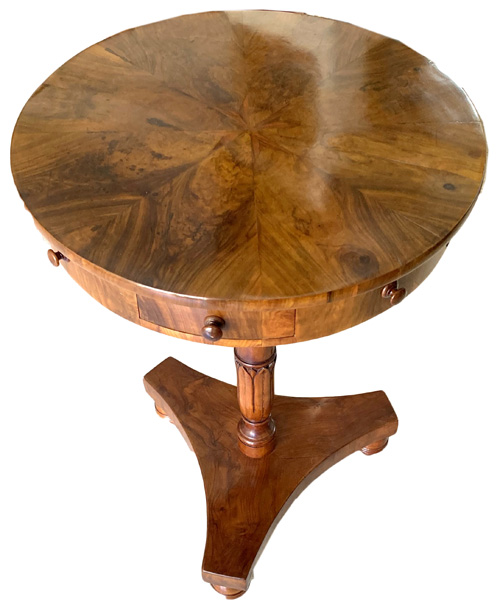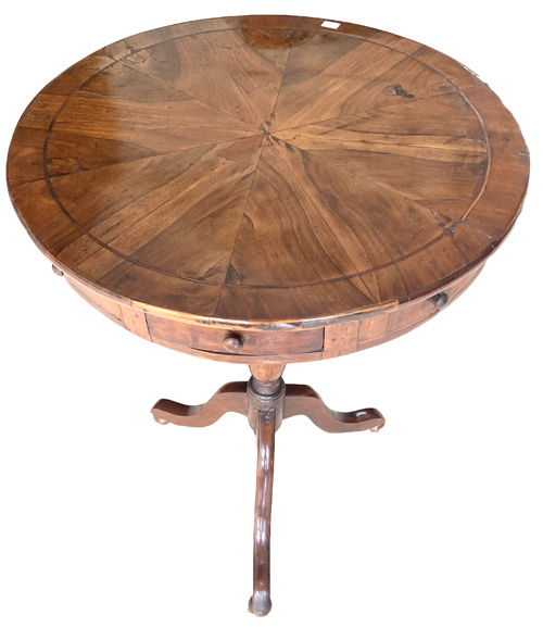 19thC. Maltese Drum Table Veneered in Olive Wood |