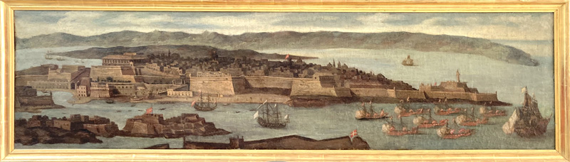 Large 18thC. Oil Painting Malta Harbour Scene |