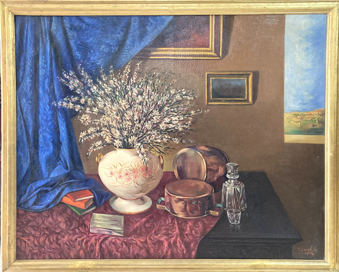 Esprit Barthet 1954 Oil on Board Still Life Flowers in a Vase 180 X 150cm |