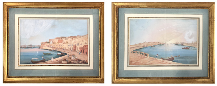 P. A. Deangelis Pair Watercolours Grand Harbour Scenes