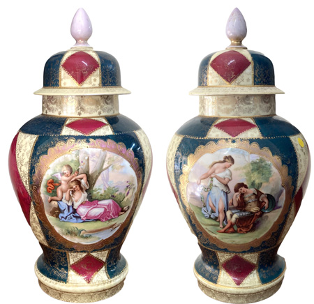 Pair Victorian Rosewood Richly Inlaid Linen Cupboards