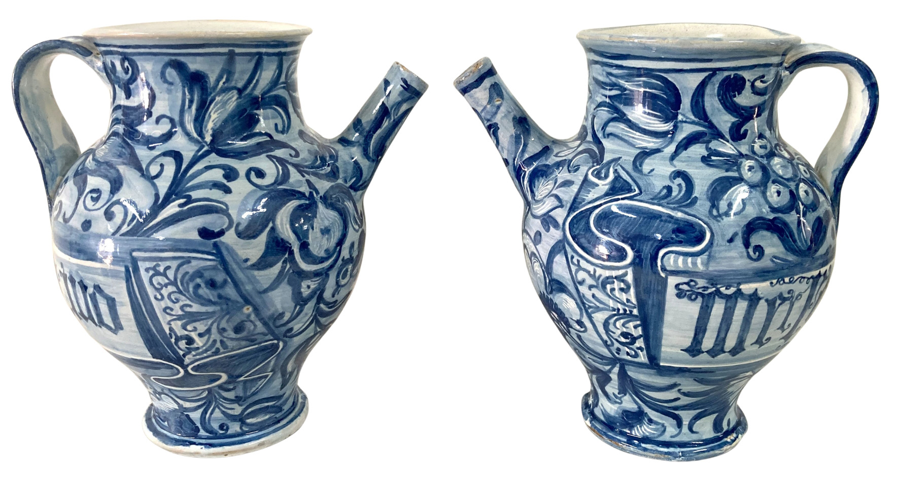 Pair 18thC. Roman Blue Albarellos c1720