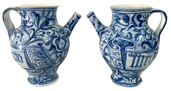 Pair 17thC. Maiolica Wet Drug Jars c 1680 |