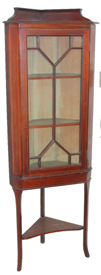 Edwardian inlaid mahogany corner cabinet |