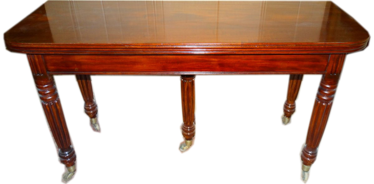 A fine Georgian mahogany d-end dining table with 3 flaps and having a concertina action |