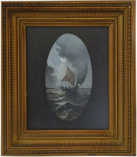 Antique oil painting Dutch Harbour Scene |