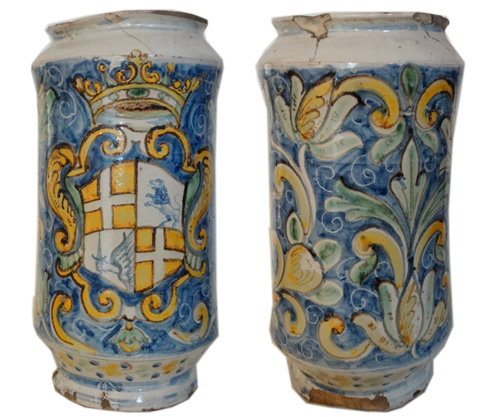 18thC. Majolica Albarello with Coat of Arms of Antonio Manoel de Vilhena |