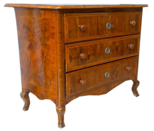 19thC.Maltese veneered in olivewood chest of 3 drawers (of small proportion)