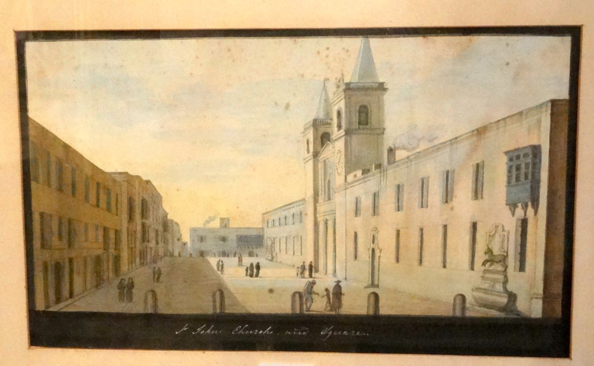 Antique coloured engraving Valletta from Quarantine Harbour & Antique coloured engraving Malta Harbour