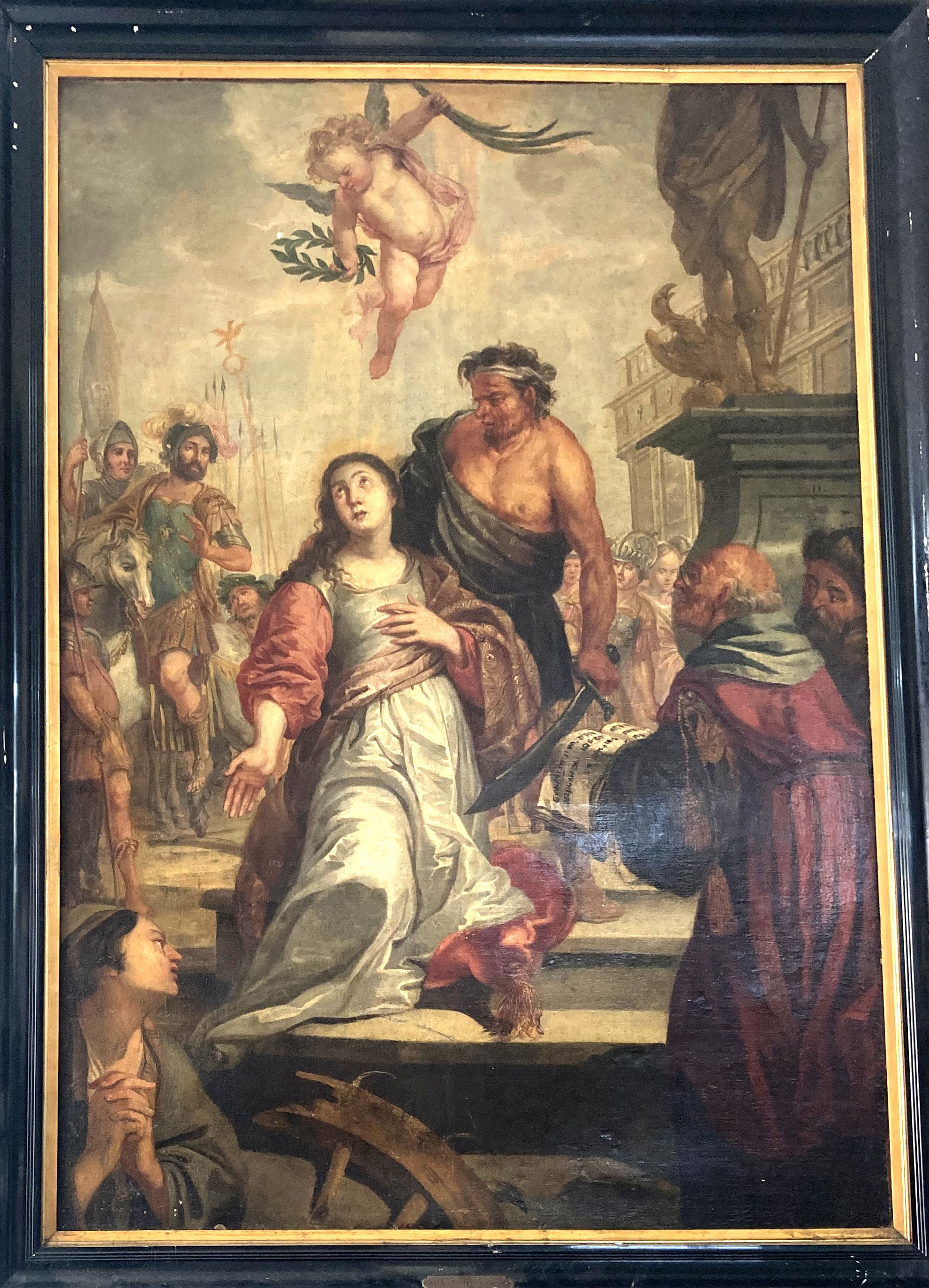 Large 18thC. Painting St Katherine Patron Saint of Zurrieq 170 X 240cm
