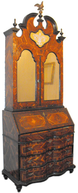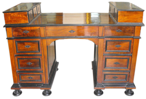 18thC. Maltese Desk veneered in olive wood on 8 bun feet