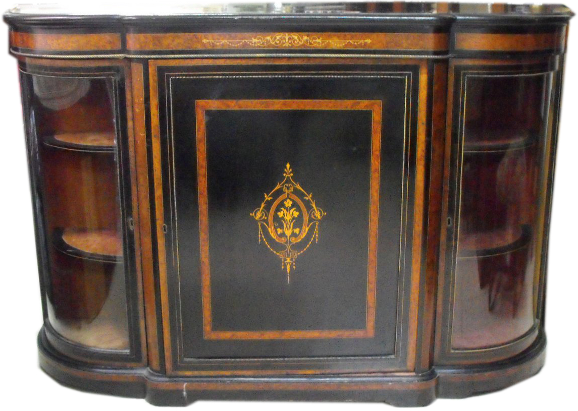 Pair Victorian Boulle Serpentine Cabinets with shaped glass doors at sides |