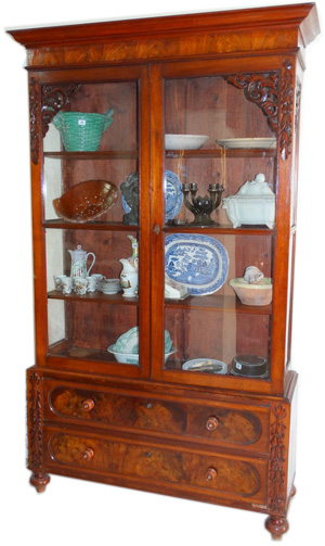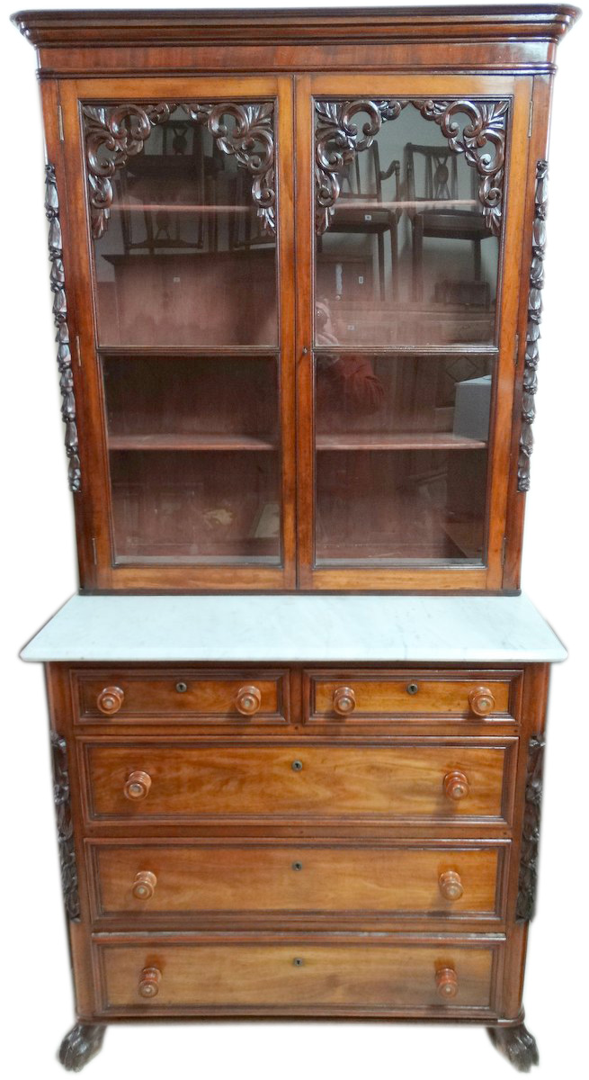 Antique mahogany chect of drawers with top 2 door bookcase