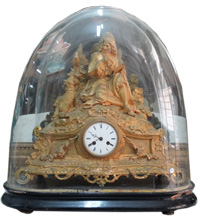 19thC.Gilt mantle clock under a glass dome |