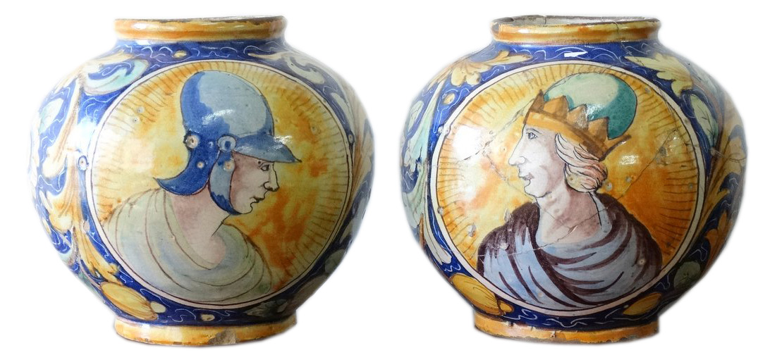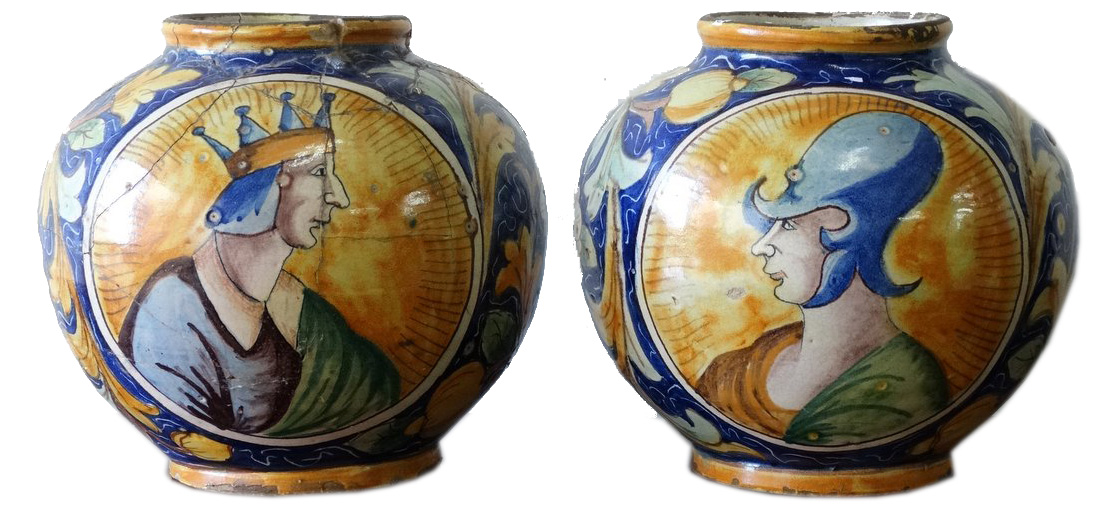 Pair 19thC.Majolica Bocca (Front & Back) |