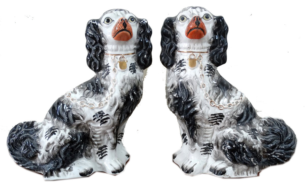 Pair antique English china dogs |