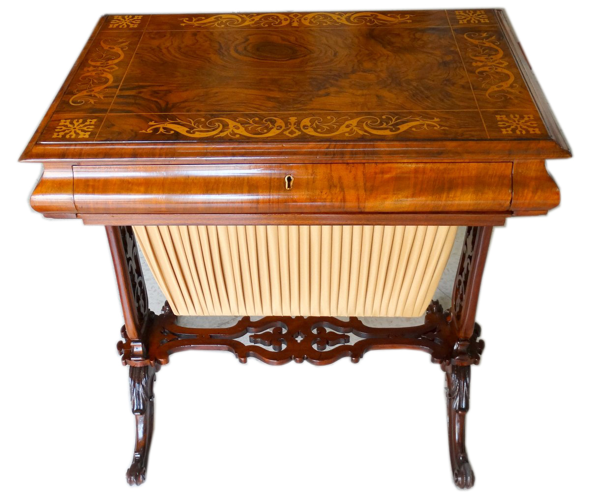 Fine Victorian inlaid walnut work table