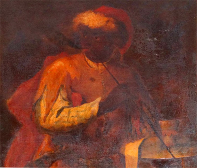 Large 19thCentury oil painting Venetian portrait of a Black moor smoking a Pipe