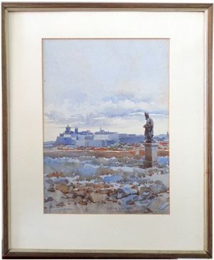 Robert Caruana Dingli: Watercolour view of Citta Vecchia |